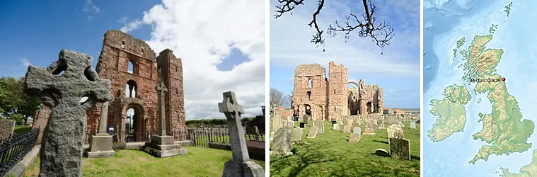 Руины монастыря Линдисфарн, расположенного на Святом острове, представляют собой остатки значимого раннехристианского центра, основанного ирландскими монахами в 635 году и известного благодаря святому Катберту и иллюминированному Евангелию из Линдисфарна. Сегодня сохранившиеся видимые остатки в основном относятся к монастырю XII века, восстановленному после нападений викингов в 793 году и пришедшему в упадок при Генрихе VIII