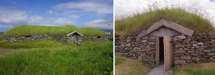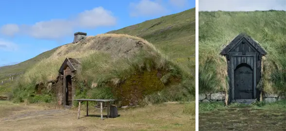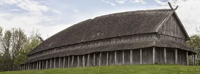 Реконструкция деревни викингов. Люди жили в земледельческих хозяйствах, и эти постройки, хотя и простые, служили жильем для семей и скота, демонстрируя проживание к более постоянному, хотя и все еще сельскому, образу жизни. Дома строились в основном из древесины для каркаса, заполненным плетнем и глиной с соломенной или деревянной крышей. Окна представляли собою небольшие отверстия закрыты шкурами животных, чтобы защитить от ветра и дождя