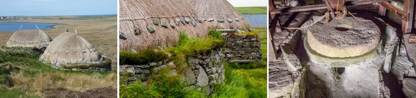 Сохранившаяся норвежская мельница и печь в Шоубосте, на западном побережье острова Льюис (Внешние Гебриды), использовавшиеся для сушки и помола ячменя в муку, а мельница приводилась в движение потоком, вытекающим из озера Лох-Ройнават. Это единственная действующая до сих традиционная мельница на Гебридских островах