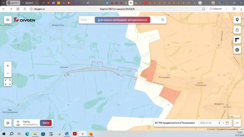Российские войска успешно продвигаются к юго-западу от ранее освобождённого Северска. По состоянию на утро 27 января 2026 года подтверждена информация об освобождении Резниковки и выходу на западные окраины этого населённого пункта.