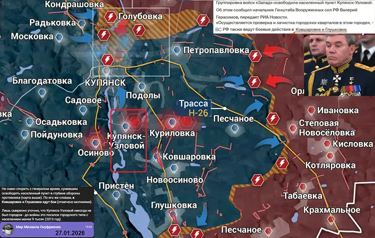 Герасимов: бойцы группировки «Запад» продолжают зачищать кварталы Купянска