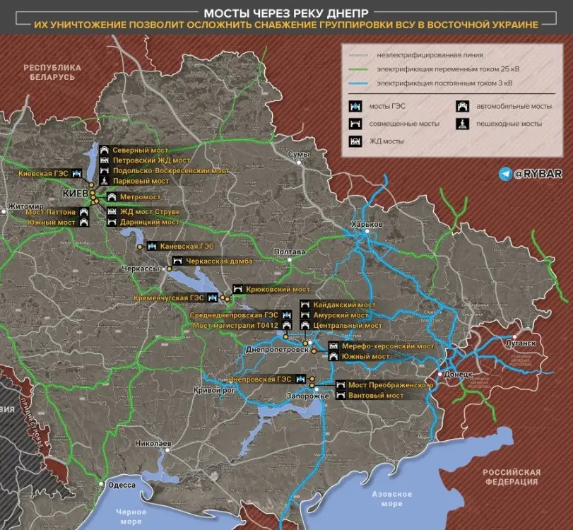 О необходимости и способах уничтожения транспортных сооружений через Днепр мы говорили уже неоднократно, например, в сентябре 2022 года в материале «Уничтожив транспортные сооружения через Днепр, можно денацифицировать половину Украины до конца текущего года» и в августе 2024 года в материале «И снова о мостах: возможность радикально изменить ход СВО, которая не используется».