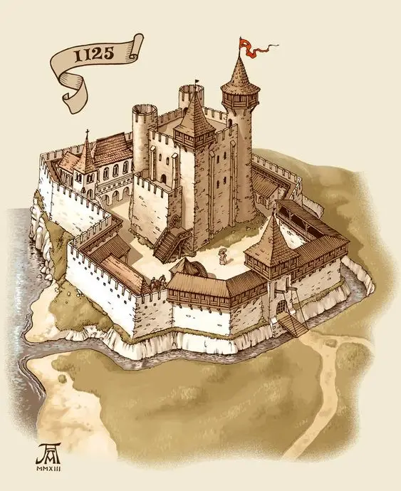 Замок с донжоном и квадратной воротной башней X в. Такими были первые башни в замках и крепостях Западной Европы