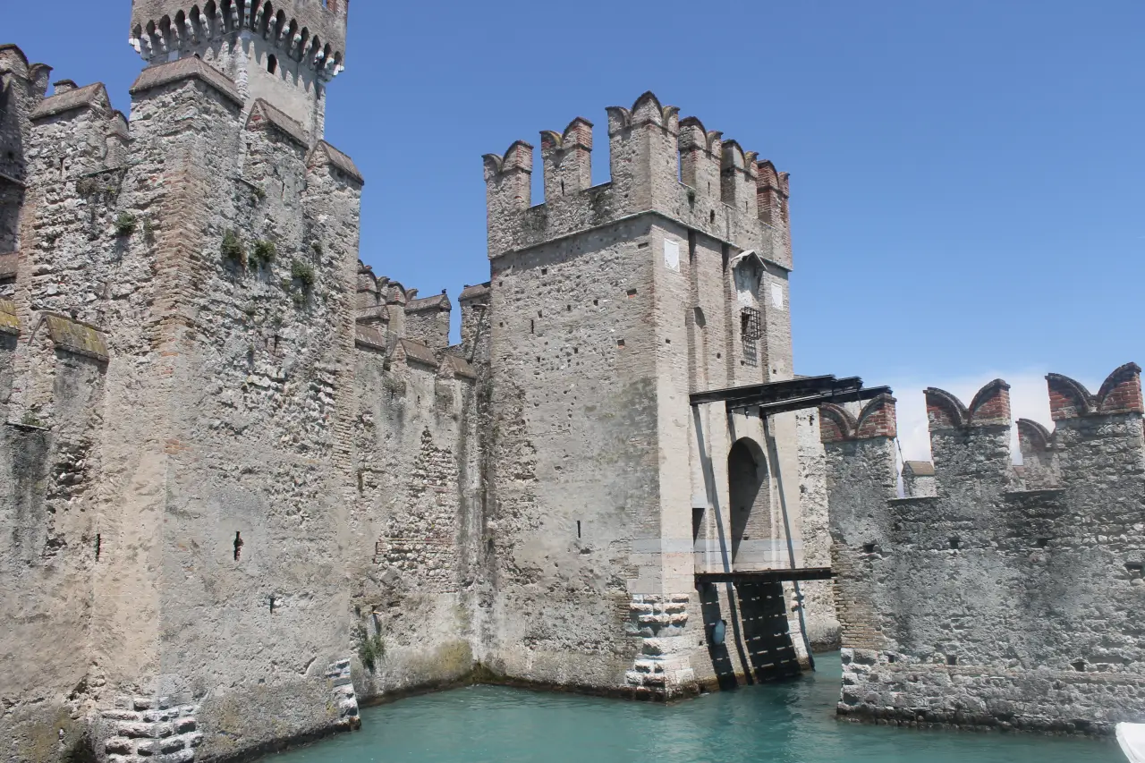 Квадратные башни в средневековых замках сохранились лишь там, где враги не могли подобраться к их углам. Предмостная башня в замке Скалигеров в городе Сирмионе на озере Гарда в Италии. Фотография автора