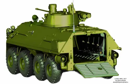 Первый вопрос у потенциальных покупателей, а где защита от бпла? Установите на поле боя. Так что ли? А с защитой меняется все и габариты и масса и скорость, мобильност, поэтому его характеристики исключительно для перевозки солдат в мирное время.