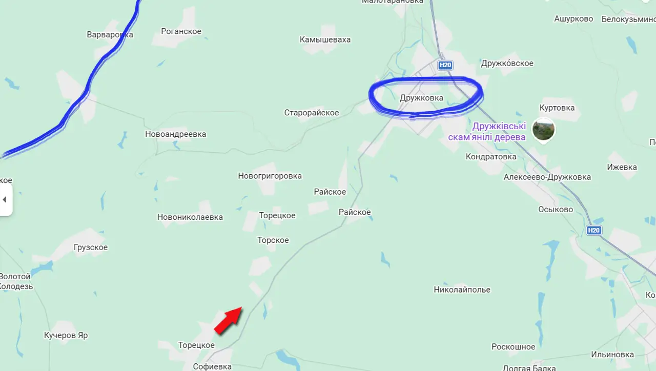 Одновременно увеличивается зона контроля на западном фланге Константиновского направления. Помимо этого ВС РФ вновь приближаются к автодороге Доброполье - Краматорск (помечена на фрагменте карты синим цветом), от которого в рамках указанной выше операции сил украинского ГУР наши войска были отодвинуты в конце прошлого года. Получается, что у противника как минимум на этом участке недостаточно сил, что удержать ранее отбитые у наших территории, не говоря уже о заходе «в контрнаступ».