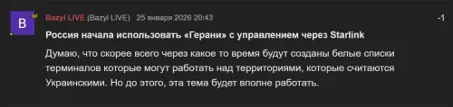 Российские источники ранее писали, что при превышении скорости 90 км/ч связь через Starlink обрывается, что делает невозможным управление такими БПЛА без дополнительных технических решений. При этом вертолетные платформы – FPV и тяжелые коптеры – продолжают работать.