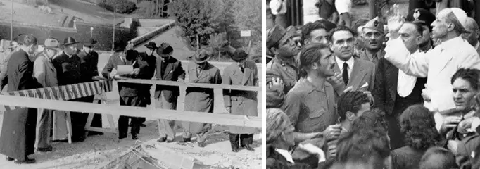 На фото слева: премьер-министр Новой Зеландии Питер Фрейзер и командующий 2-й новозеландской дивизией генерал Бернард Фрейберг разговаривают со швейцарскими гвардейцами у ворот Ватикана 4 июня 1944. Источник: George Bull. На фото справа: американские войска на площади Рима. 1944 год