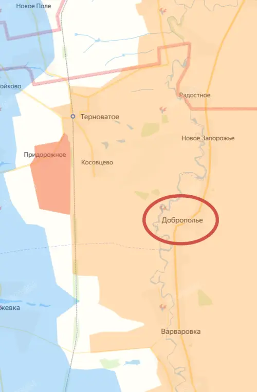 После недавнего освобождения Терноватого в Запорожской области штурмовые подразделения «восточной» группировки армии России продолжили продвижение на этом участке фронта, вклинившись в глубину обороны противника и освободив относительно небольшой населенный пункт Придорожное.
