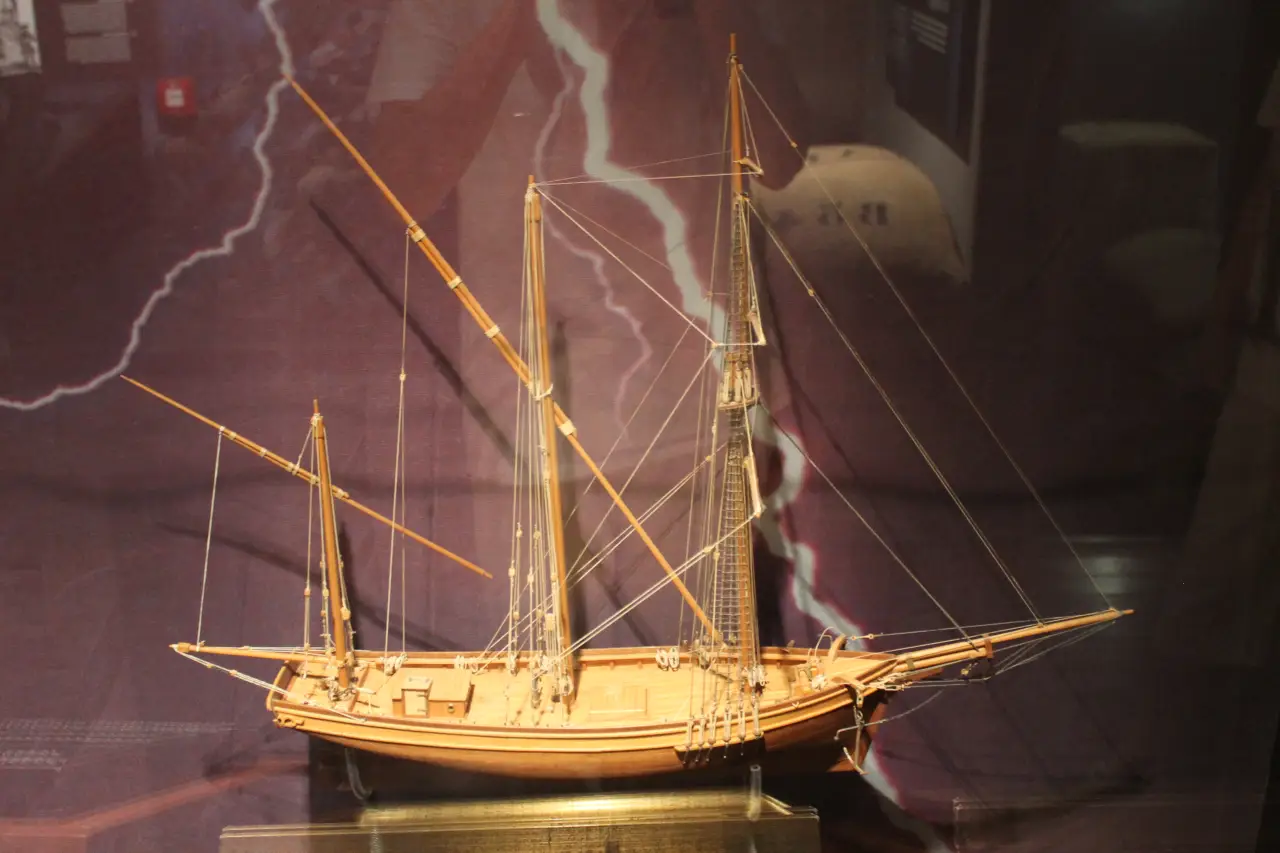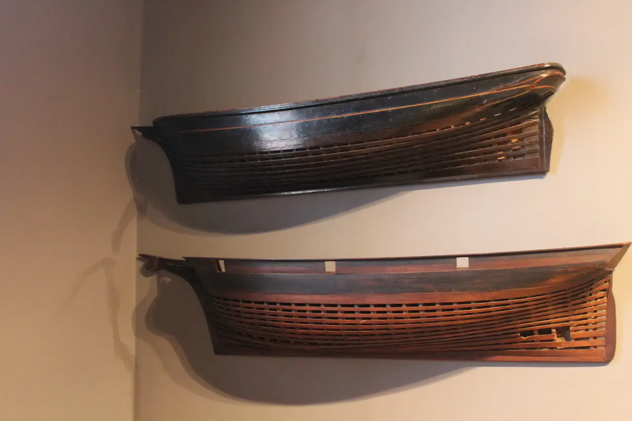 Классическая шебека. Причем интересно, что модели в музее в основном некрашеные, теплого цвета натуральной древесины. При этом в пушечных портах пушек нет, поскольку они металлические и выбивались бы из общего стиля!