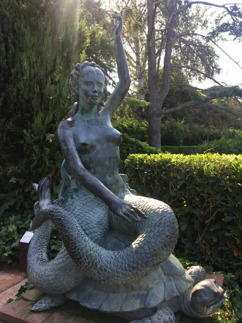 Парк Клотильды – есть и такое приятное место, где так приятно погулять в жару. Там бьют фонтаны и… есть вот такая «правильная» скульптура русалки» с двумя хвостами. Понятно же, чтио однохвостные русалки… неправильные»