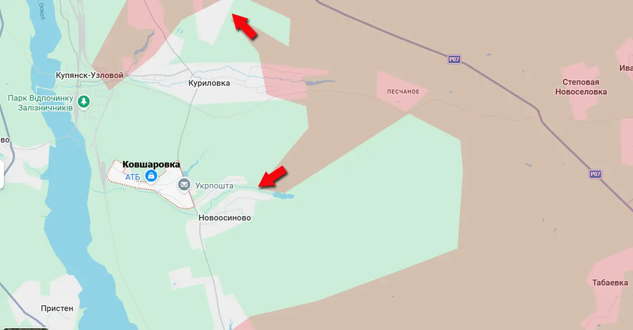 Одновременно с этим фиксируется продвижение Вооружённых сил России в районе Куриловки. Это восточный пригород всё того же Купянска-Узлового.