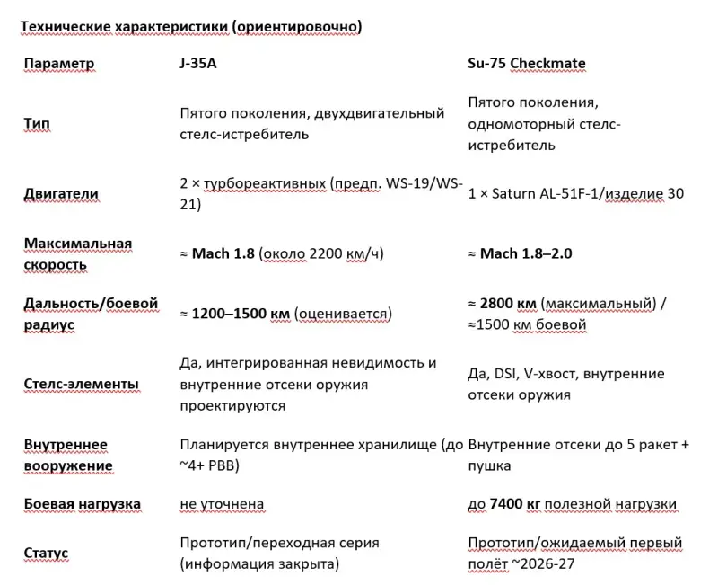 Также J-35A легче J-35B за счёт отсутствия усиленного шасси и складных консолей крыла, что позволяет нести больше топлива. В отличие от тяжёлого J-20, он относится к среднему классу истребителей. Таким образом, Китай стал второй страной в мире после США, имеющей на вооружении два типа «стелс»-истребителей пятого поколения.