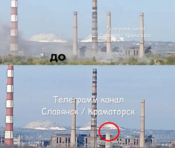 В результате удара ФАБ с УМПК в прямом смысле слова на Славянской ТЭС в оккупированной части ДНР снесло трубу. Есть соответствующие снимки, сделанные и выложенные в сеть местным жителем. К сожалению, не понятно, а где разорвалась фугасная авиабомба. До 1993 года электростанция в городе Николаевка вблизи Славянска называлась Славянская ГРЭС им. 50-летия Великой Октябрьской социалистической революции.