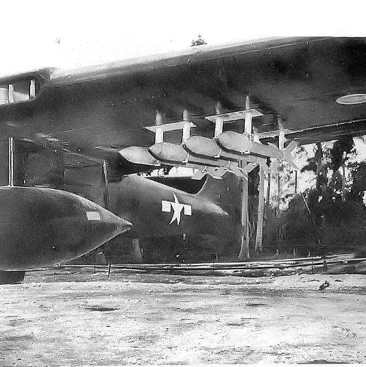 Р-61 547-й эскадрильи в ходе подготовки к вылету на штурмовку, остров Лусон, 1945 год. Хорошо видна подвеска бомбы на пилон под фюзеляжем