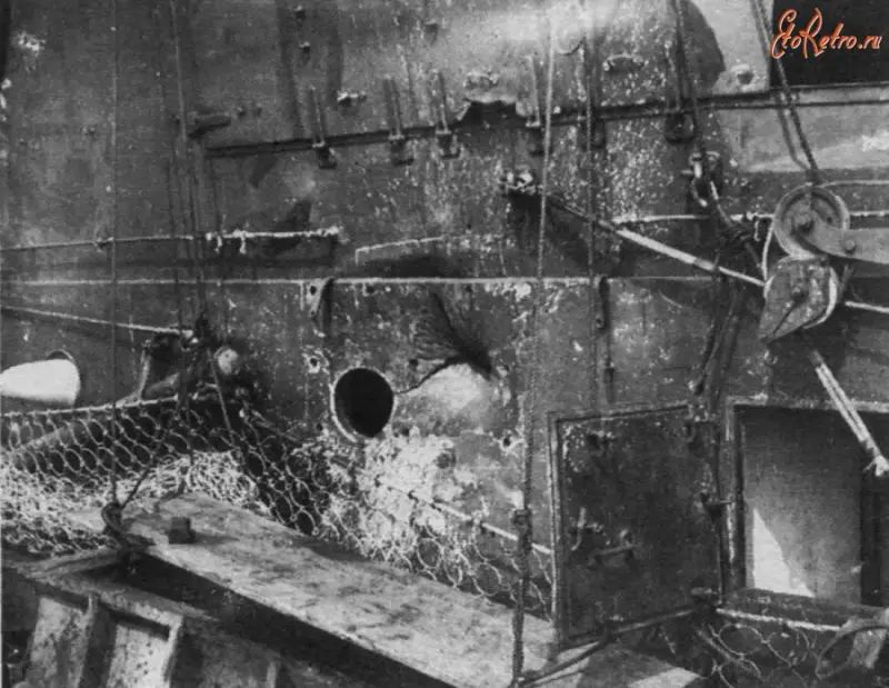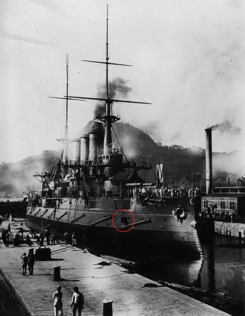 Другое дело, что многие конструкторские решения «Цесаревича» усиливали его боевую мощь лишь на бумаге. Те же башни среднего калибра, давая лучшие углы обстрела, существенно снижали боевую скорострельность 6-дм орудий, да и малые объемы башни вкупе с отсутствием вентиляции стволов приводили к отравлению расчетов пороховыми газами. Более вместительные казематы тоже страдали от загазованности, но все же значительно меньше. Да и размещение батарей 75-мм орудий на небольшой высоте от ватерлинии, хотя в теории давало возможность поражать атакующие миноносцы настильной стрельбой, на практике в сочетании со сложной формой борта создавало куда больше проблем, нежели давало преимуществ.