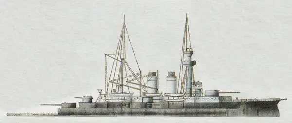 21 марта 1898 г. – Ч. Крамп получает задание на броненосец, подобный «Пересвету», но с 12-дм орудиями и с двумя машинами вместо трех.