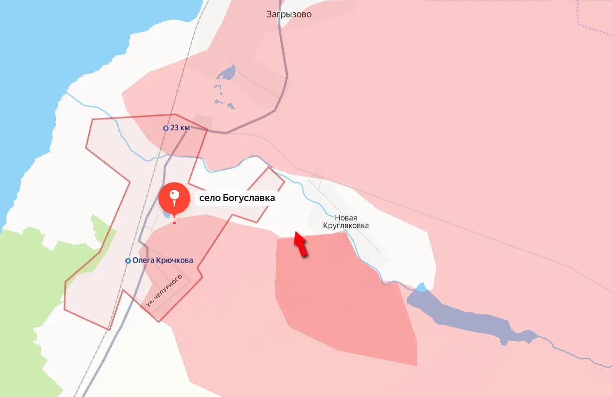 К настоящему моменту южная часть Новой Кругляковки контролируется Вооружёнными силами России. А оставшиеся группы противника в северной части этого села и соседней Богуславке попали в огневой мешок, размеры которого в результате ударов ВС РФ продолжают сокращаться.