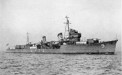 В начале войны вместе с однотипными кораблями «Сирацую», «Сигурэ» и «Югурэ» базировался в Хасирадзиме в японских территориальных водах и привлекался для противолодочного патрулирования.