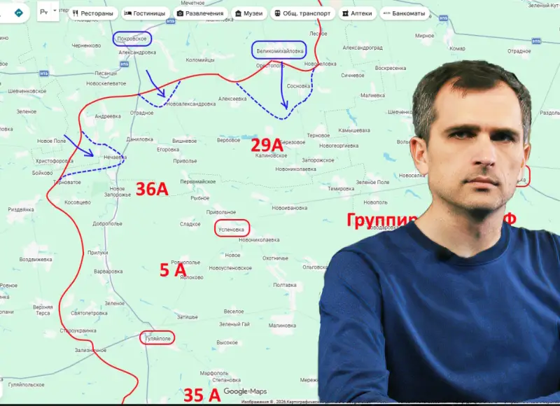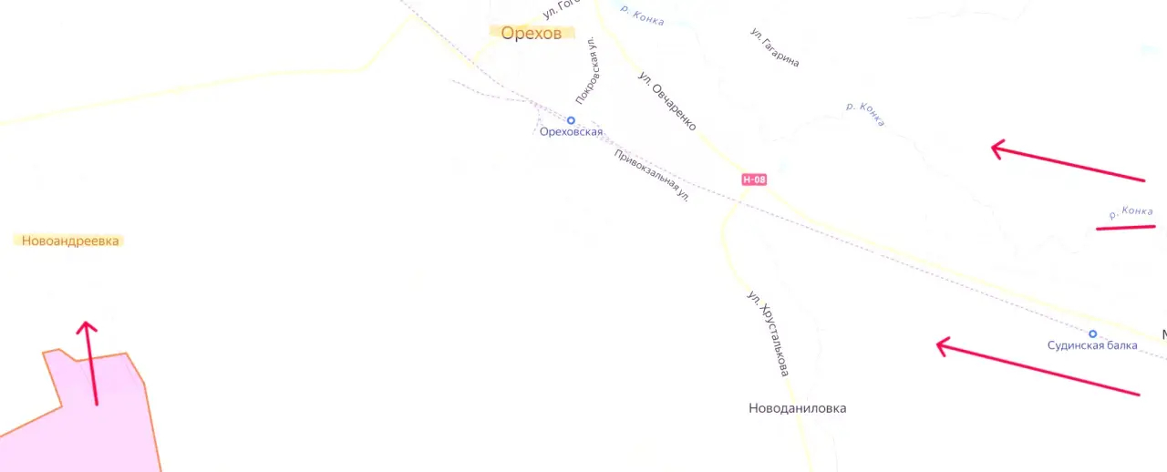 Происходит активное продвижение российской армии в сторону Орехова, в частности, зачищается территория к северу от реки Конка.