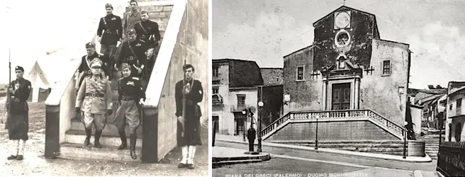 На фото слева: визит Муссолини на Сицилию. На фото справа: типичный городок Сицилии