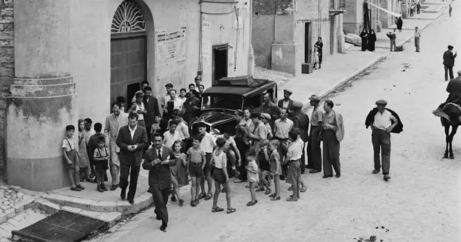 На фото слева: Муссолини в деревне Ганги во время своего вояжа на Сицилию в 1924 году, где его сделали почетным гражданином. На фото справа: деревня Ганги