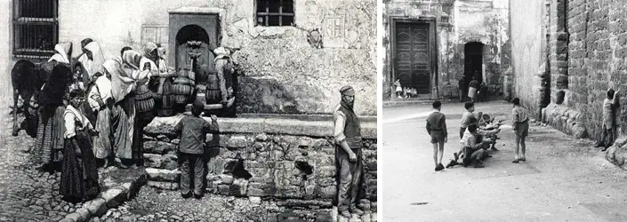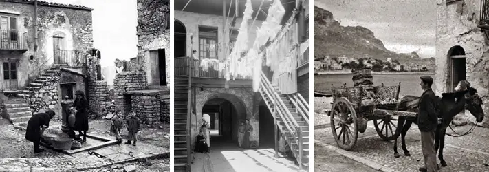 На фото слева: город Пьяна-деи-Гречи (ныне - Пьяна-дельи-Альбанези). На фото справа: сицилийский дворик. Первая половин XX века