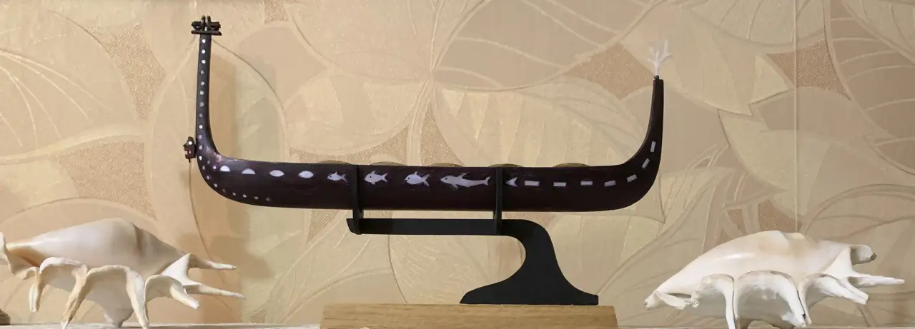 Но вот прошло 60 лет, и я наконец-то смог осуществить мечту своего детства, то есть сделать модель пироги охотников за головами с Соломоновых островов. А началось всё с того, что в Интернете я обнаружил сайт моделиста с Гавайских островов Френсиса Пиммеля. Занимается он тем, что мастерит модели различных полинезийских судов, которых, как оказалось, на Тихом океане превеликое множество: на каждом архипелаге свой тип пироги и свои украшения. И как среди его моделей нашлась и пирога с Соломоновых островов, причем с корпусом, инкрустированным кусочками перламутра от раковин. Решил повторить ее, заказал перламутр с острова Бали, поскольку модель для самого себя должна иметь «аромат далеких островов».
