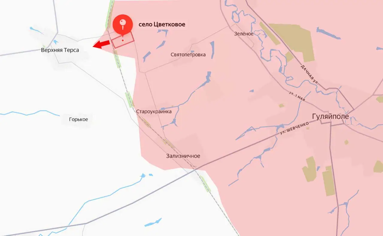 Отбив контратаки противника к северу от Гуляйполя, российские войска продолжили продвижение в западном направлении. Стало известно о том, что Вооружённые силы России, нанеся огневое поражение противнику к северо-западу от Гуляйполя, освободили село Цветковое Запорожской области.
