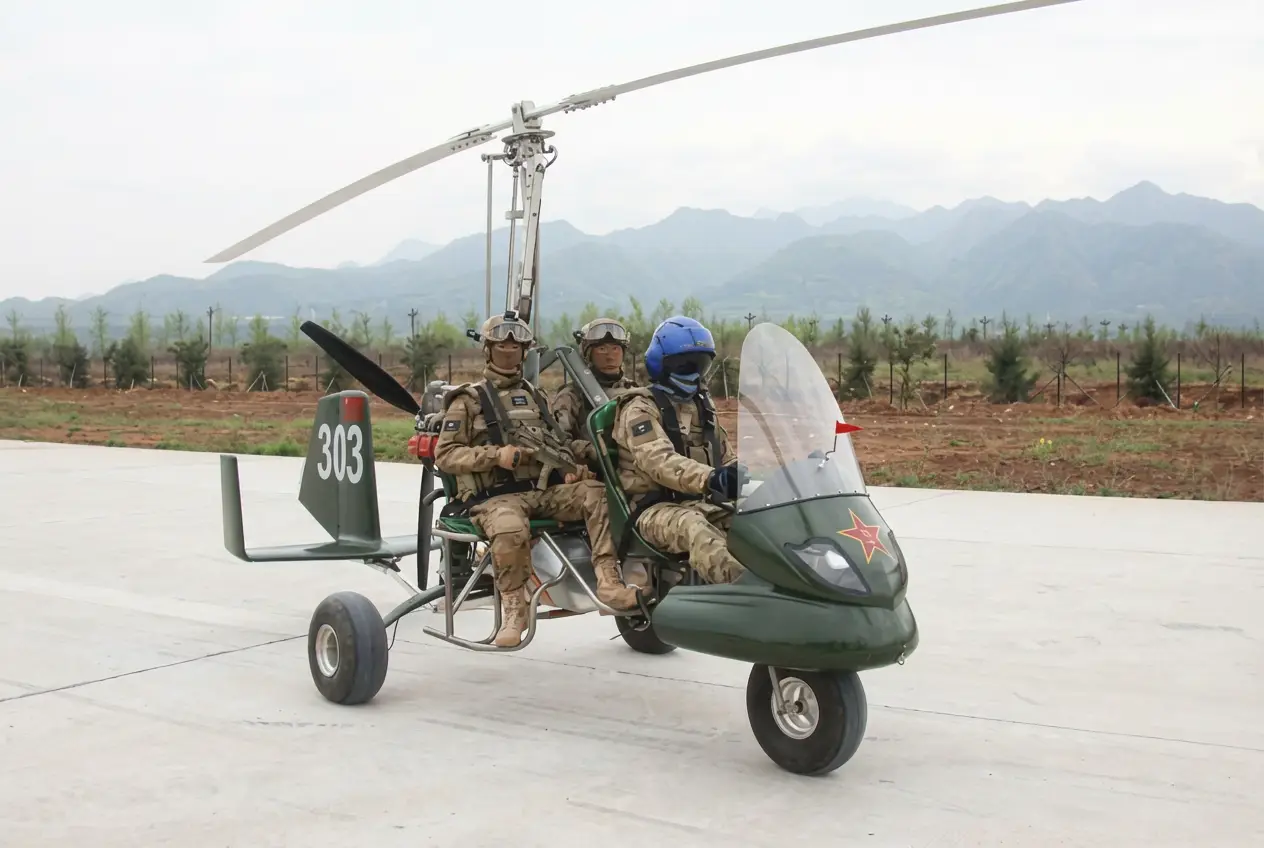 Важно, что посадка с выключенным двигателем для автожира является штатным режимом авторотации и даже лежит в основе тактики скрытного полёта, используемого спецназом НОАК. Сценарий предусматривает набор высоты до 2000–3000 метров, полное отключение силовой установки и последующее планирование за счёт авторотации. Этот запас высоты позволяет аппарату преодолеть 8–12 км до посадочной площадки в режиме акустической малозаметности, а шум винтов становится слышен только со 100–200 метров.