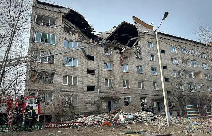 Причина взрыва пока не установлена, никаких официальных заявлений еще не последовало. Сейчас идут работы по разбору завалов и поиску людей. Есть предварительная информация, что взрыв произошел на третьем этаже здания, третий и второй этаж частично разрушены, обрушилось чердачное помещение. Есть опасность дальнейшего разрушения здания. Сообщается о двух погибших и четырех пропавших без вести. Официально о взрыве пока не говорят.