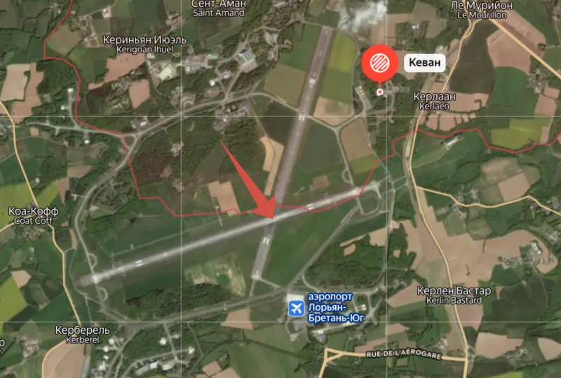 При этом все 18 самолётов ATL2 размещены на военно-морской авиабазе Ланн-Биуэ в Бретани. Она же - аэропорт Лорьян-Южная Бретань. Одна из площадок с ангаром (47.769780, -3.428413):