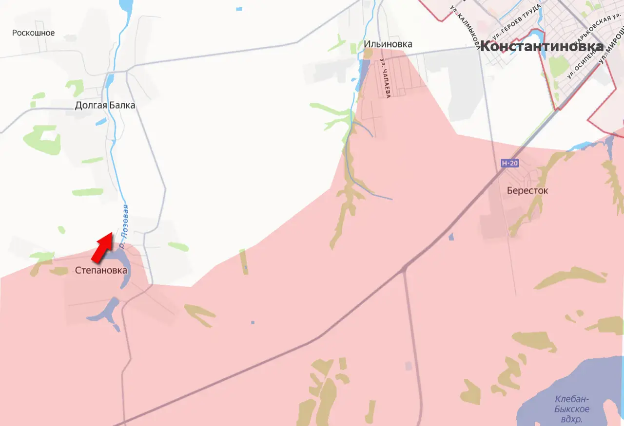 На Константиновском направлении специальной военной операции российские войска взяли под контроль водохранилище на реке Лозовая. Этот небольшой водоём расположен в селе Степановка, что в 3,5 км к юго-западу от Константиновки.