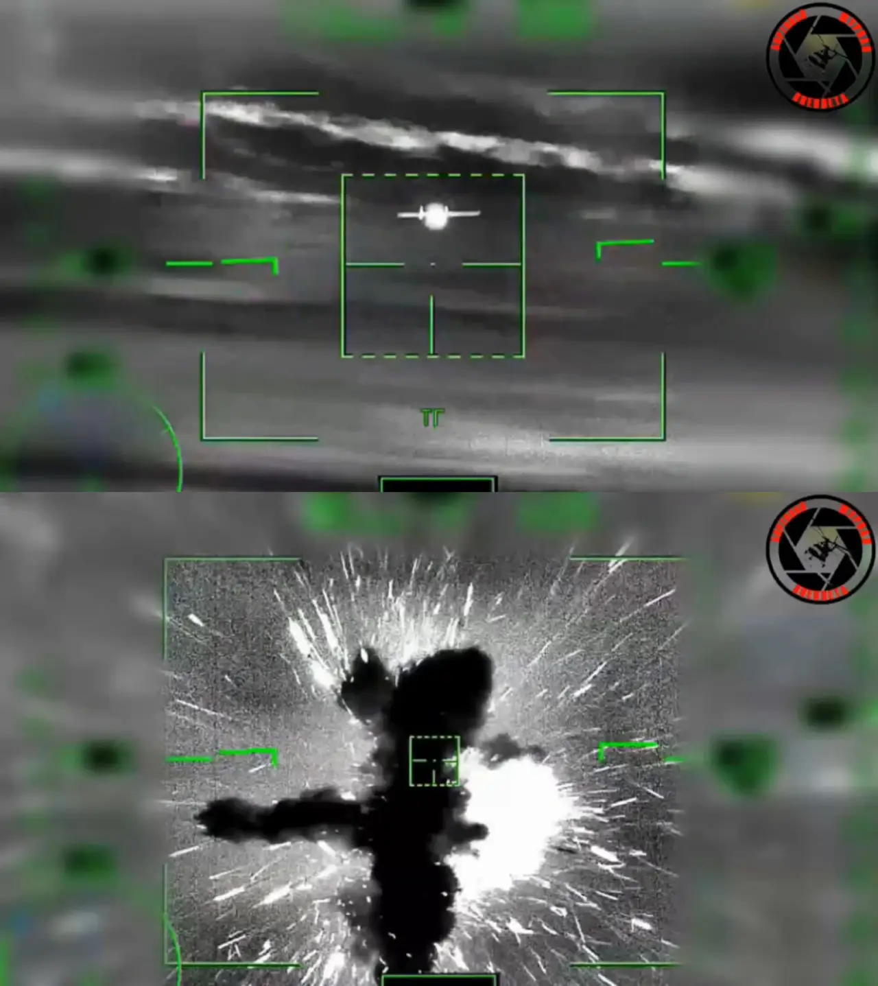 Кадры из видео боевой работы Ка-52М по украинским БПЛА-камикадзе большой дальности, опубликованного на Телеграм-канале Бортовой Журнал Военлета