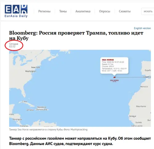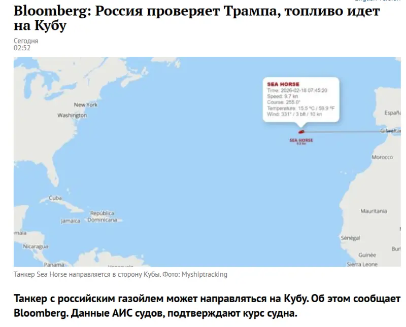 Как подчеркнули в посольстве, никакого танкера Sea Horse с 200 тысячами баррелей нефти Россия на Кубу не отправляла. Тем более в сопровождении некоего эсминца с названием «Мад 2034». В составе ВМФ РФ корабля с таким странным названием никогда не было, да и не будет.