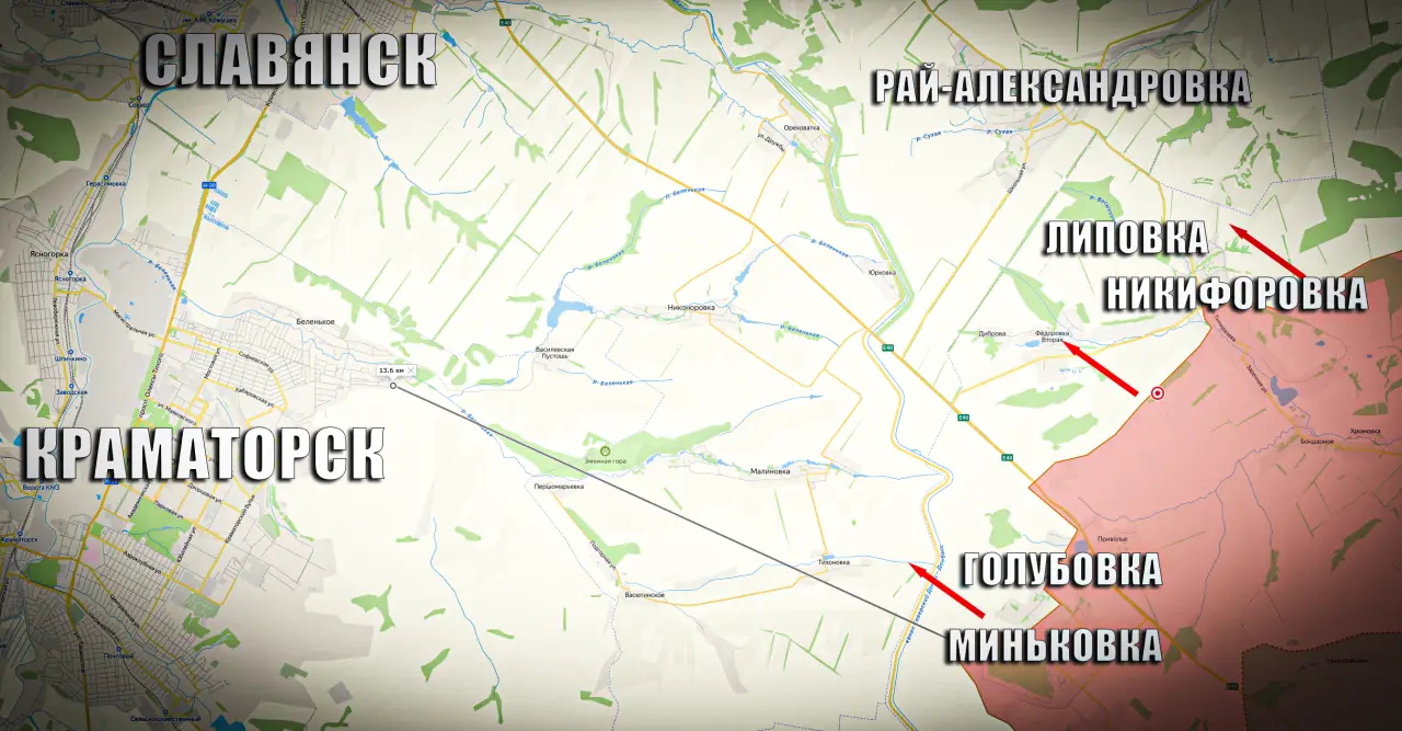 Взятие Липовки и бои за Вторую Федоровку откроют нашим войскам дорогу на Рай-Александровку. Этот населенный пункт – ключ к водораздельному хребту по реке Сухая. Если посмотреть на карту, становится очевидно: выход на эти высоты – это приговор для гарнизонов ВСУ в Калениках и Кривой Луке. До Славянска останется каких-то 10 км по прямой.