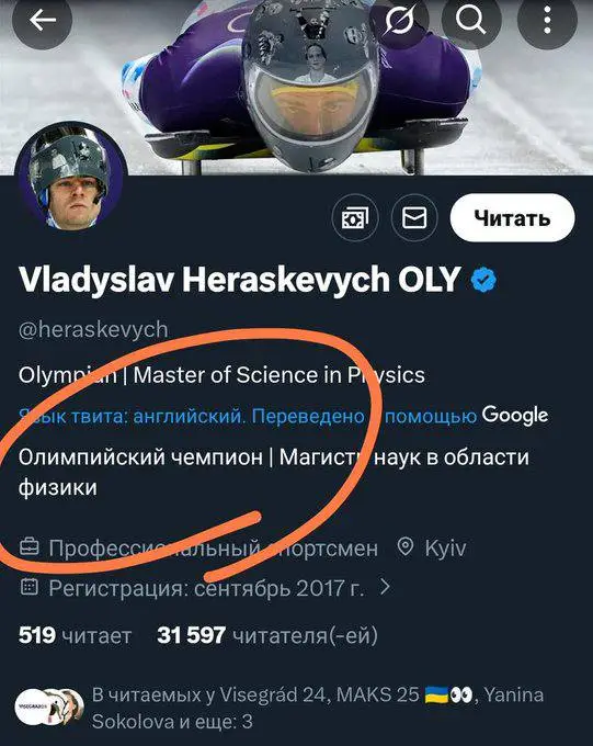 Украинский скелетонист Гераскевич, ставший известным благодаря дисквалификации на Олимпиаде из-за шлема с изображениями погибших украинских спортсменов, выступил с трибуны Верховной рады и потребовал лишить наград и званий своего более успешного соотечественника — легкоатлета Сергея Бубку.