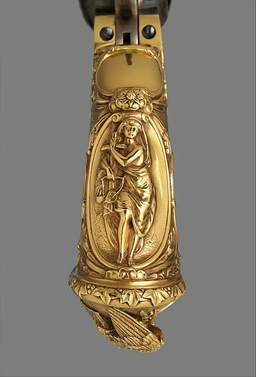 13. «Кольт-полис». Подарочный экземпляр. Ок. 1868 г. Материалы: сталь, золото, латунь. Длина 27,9 см. Калибр 9,1 мм