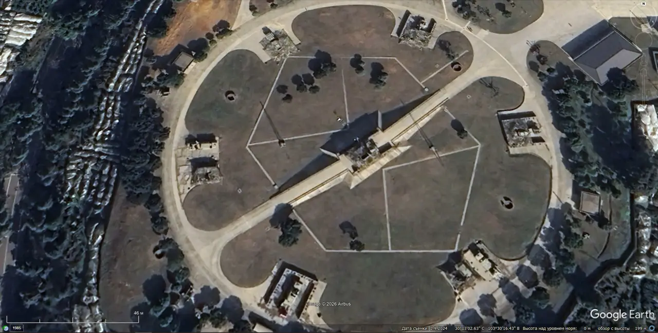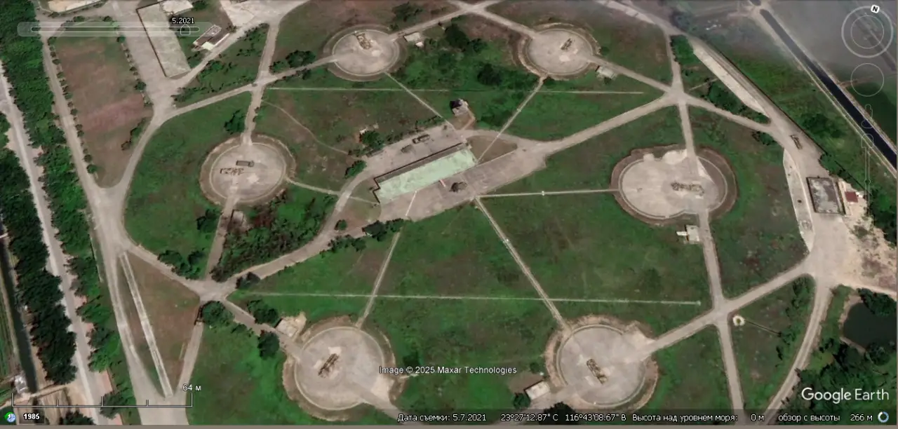 Спутниковый снимок Google Earth: элементы ЗРС С-300ПМУ и HQ-2 на территории Учебного центра ПВО НОАК в окрестностях города Сиань. Снимок сделан в марте 2025 года