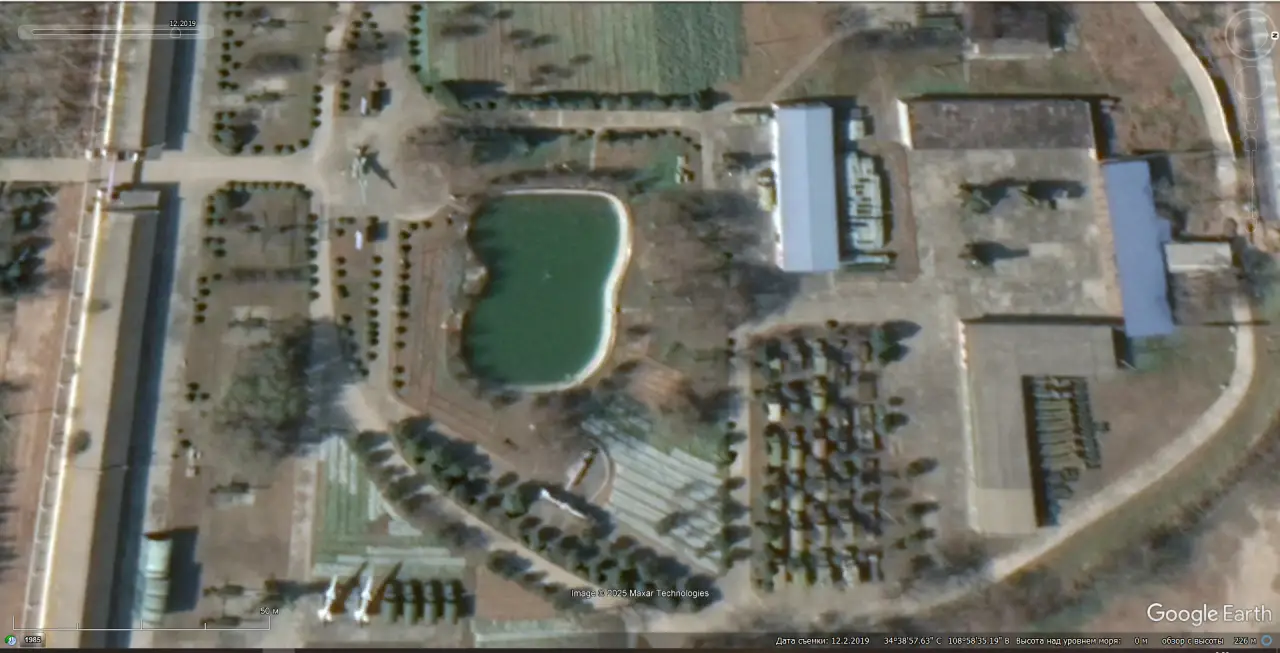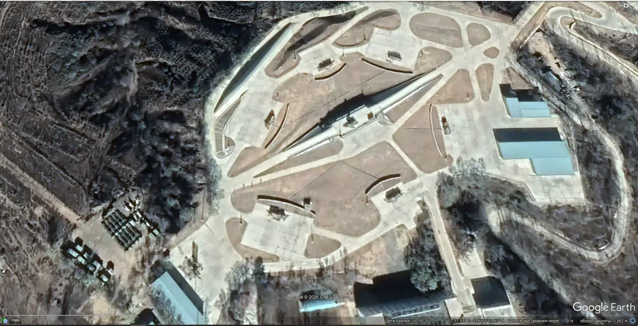 Спутниковый снимок Google Earth: база хранения ЗРК НQ-2 в окрестностях города Сиань. Снимок сделан в декабре 2019 года