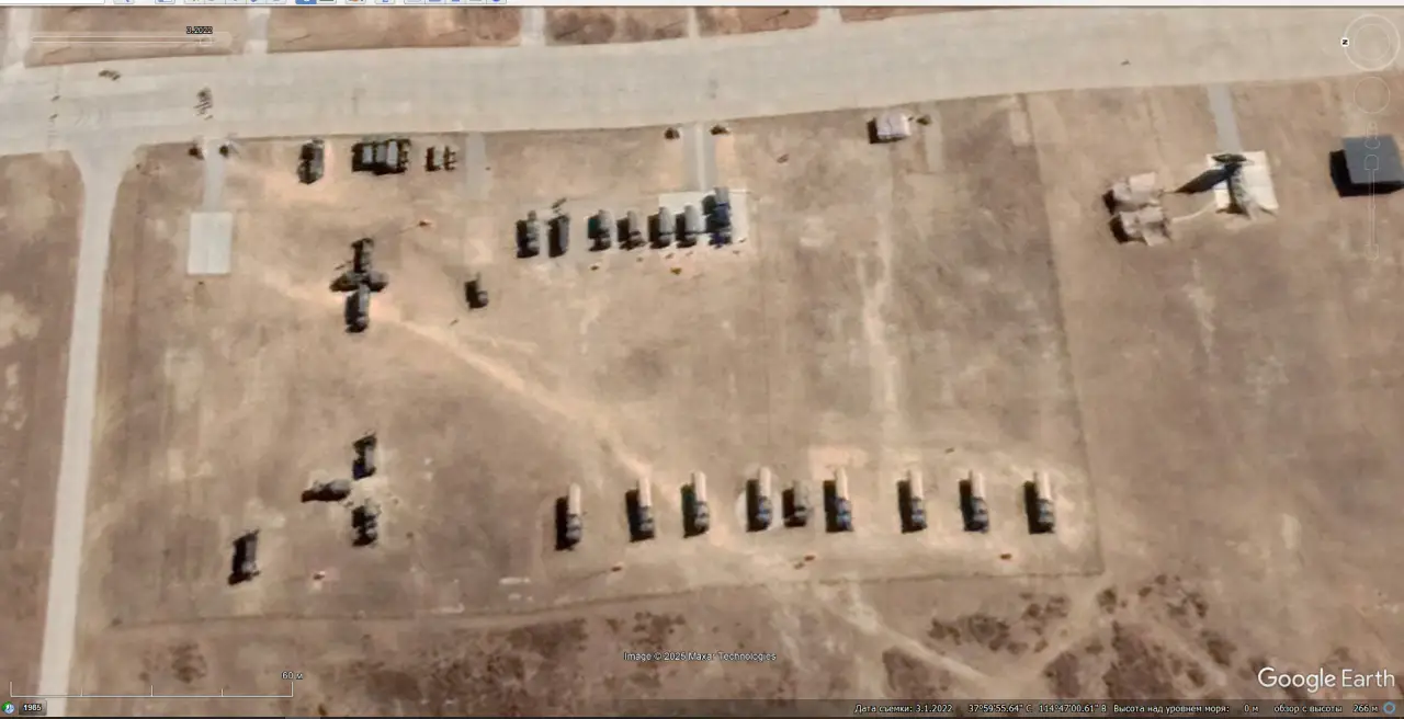 Спутниковый снимок Google Earth: возможная позиция ЗРК НQ-22 северней Пекина. Снимок сделан в октябре 2021 года
