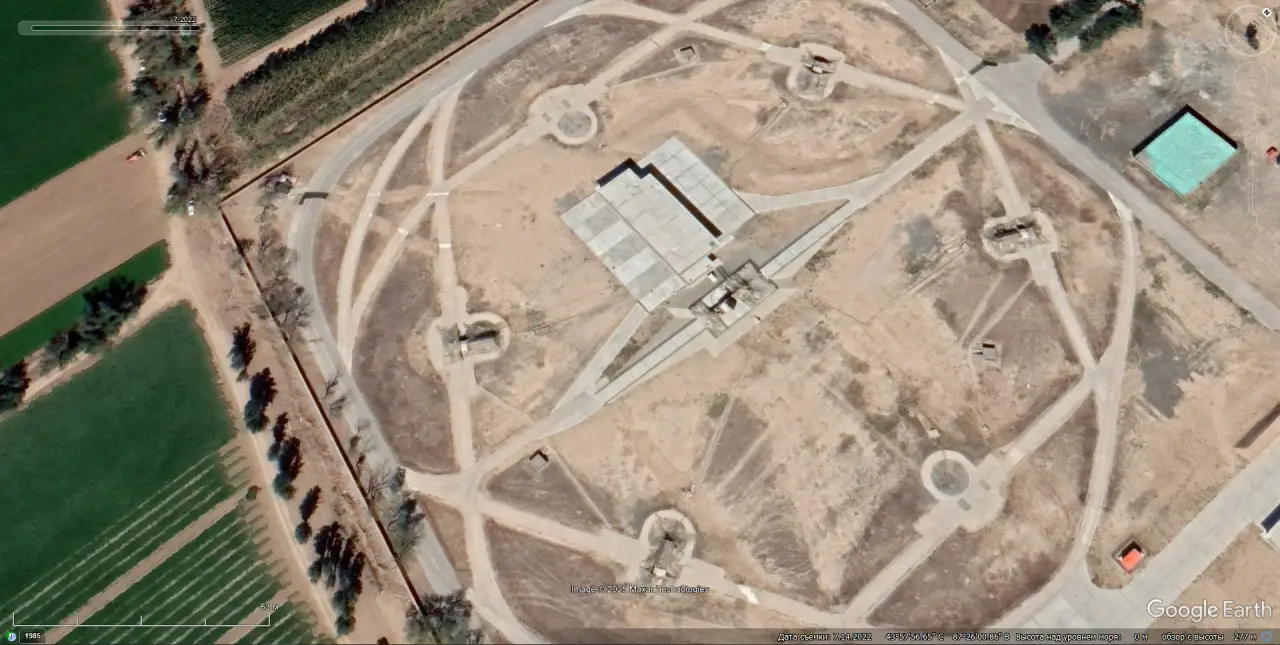 Спутниковый снимок Google Earth: ЗРК HQ-9 на реконструированной позиции HQ-2 северней Пекина. Снимок сделан в апреле 2023 года