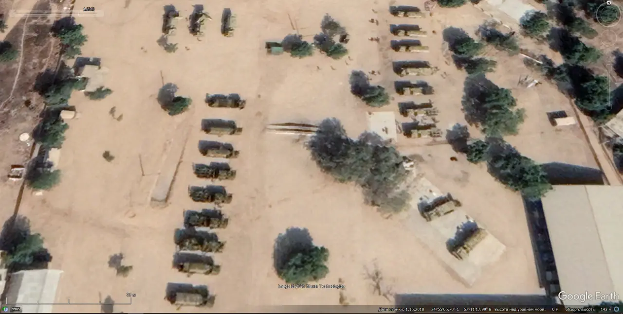 Спутниковый снимок Google Earth: ЗРК LY-80 на базе ПВО в пригороде Карачи. Снимок сделан в январе 2018 года