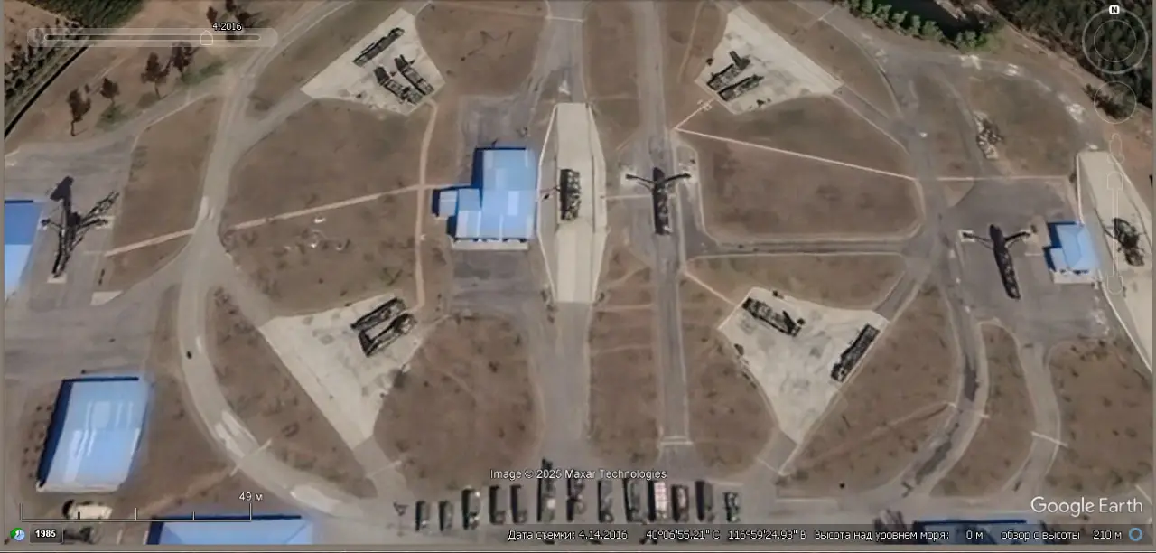 Спутниковый снимок Google Earth: позиция ЗРК НQ-2 на восточной окраине Пекина. Снимок сделан в апреле 2016 года