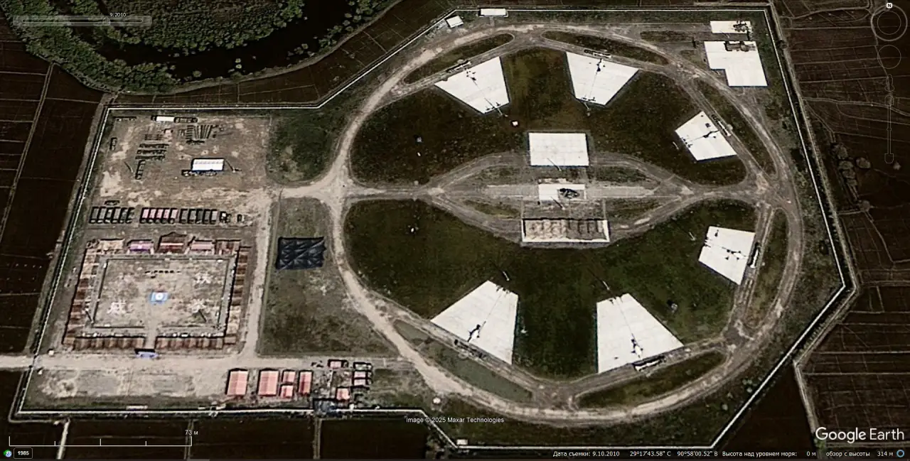 Спутниковый снимок Google Earth: позиция ЗРК HQ-12 северо-восточней Пекина. Снимок сделан в сентябре 2025 года