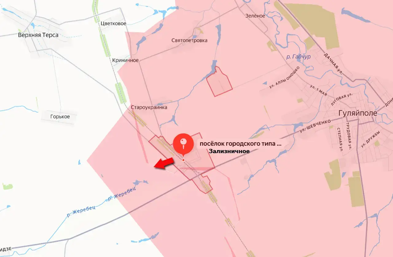 Российские войска стараются выровнять фронт в наступлении западнее села Зализничное (Железнодорожное) по линии Горькое-Мирное. Это позволит усилить восточный фланг в направлении Орехова, который продолжает оставаться под оккупацией ВСУ.