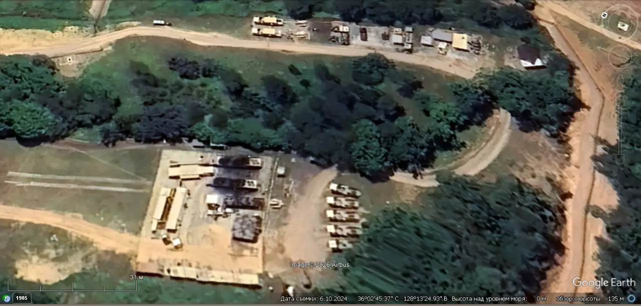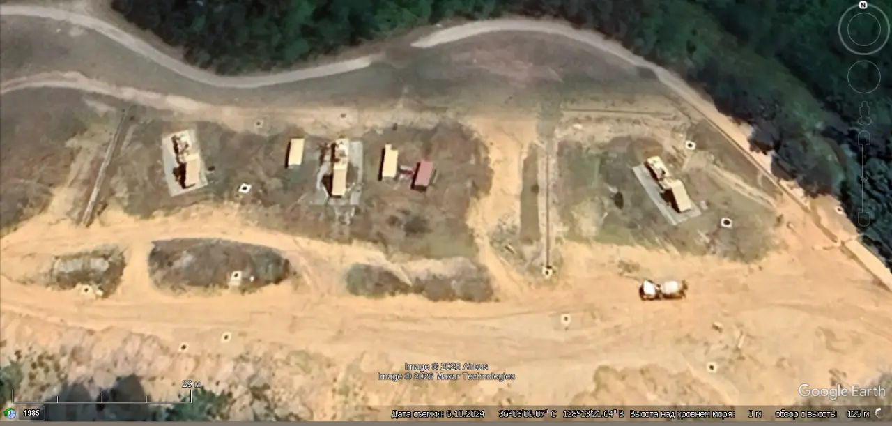 Спутниковый снимок Google Earth: самоходные пусковые установки системы THAAD на позиции в 10 км к западу от города Куми. Снимок сделан в июне 2024 года
