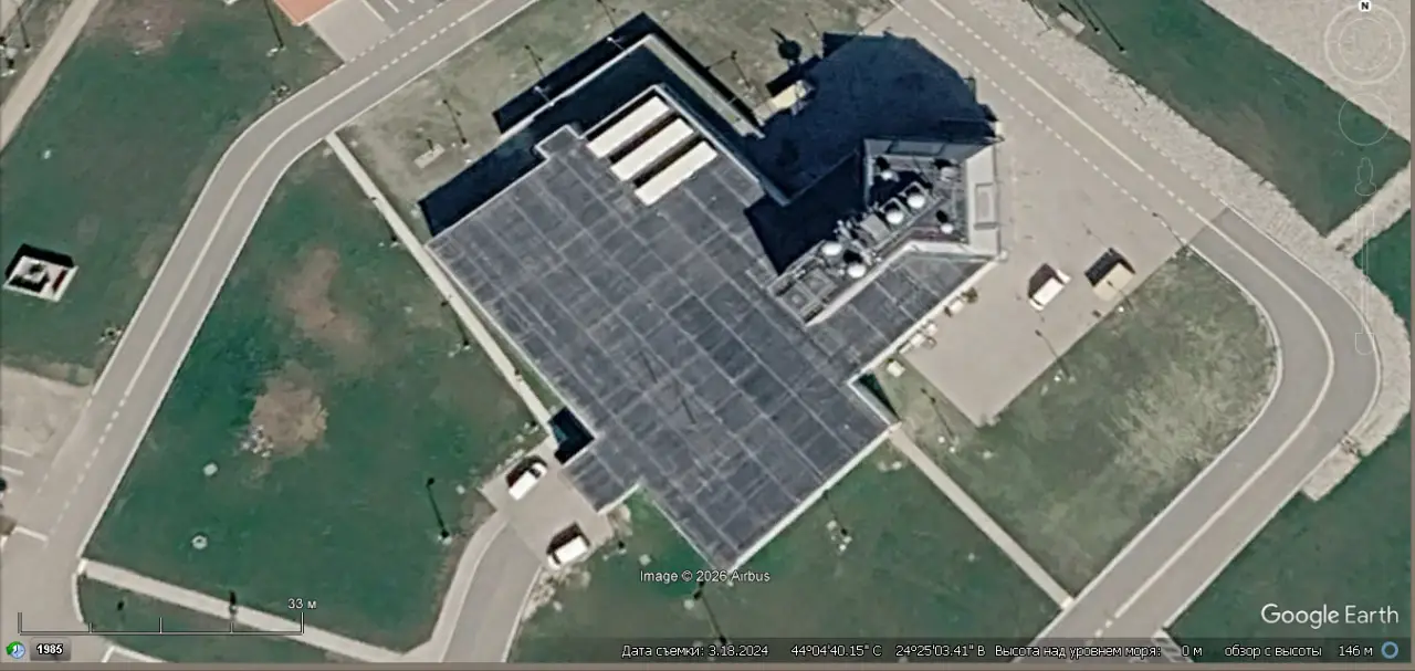Спутниковый снимок Google Earth: аппаратная часть комплекса Aegis Ashore на авиабазе Девеселу. Снимок сделан в марте 2024 года