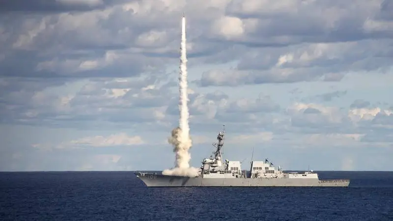 Пуск зенитной ракеты с крейсера типа «Тикондерога»