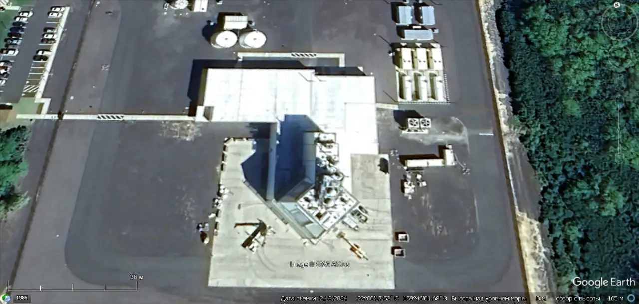 Спутниковый снимок Google Earth: РЛС Aegis Ashore на острове Кауаи. Снимок сделан в феврале 2024 года